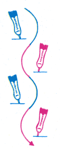 Вы помните упражнение, которое мы выполняли по обе стороны оси? Теперь необходимо исполнить его, скользя на внутренних ребрах. К концу дуги вперед выносится свободная нога, готовясь к продолжению движения, а также и рука и плечо, ранее бывшие сзади. Затем вы приходите на другую ногу, на внутреннее ребро конька, и так далее, продолжая движение вдоль оси. Наклон каждый раз к центру круга, по дуге которого вы едете.